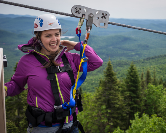 L’aventure débute au village, au Centre Aventure (édifice Sommet des Neiges), où vous êtes invité à faire votre inscription, enfiler votre harnais et rencontrer vos guides. Vous montez ensuite au sommet à bord de la télécabine panoramique, et après une petite marche, vous arrivez à la première tyrolienne.
